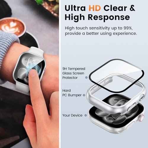 - حماية كاملة: يمكن أن يوفر الجراب الواقي الخاص بنا لساعة اي ووتش 10 جميع جوانب ساعتك، مما يوفر حماية شاملة لساعة ابل. يمكن للتصميم المقاوم للصدمات والخدوش حماية الساعة من الاصطدامات والخدوش. طلاء شاشة شفاف عالي الدقة بنسبة 99.99%، كاره للماء والزيوت ضد الأوساخ والعرق والغبار وبقايا الزيت الناتجة عن بصمات الأصابع، مما يحافظ على شاشة الساعة نظيفة في جميع الأوقات. يمنحك تجربة مستخدم أفضل.