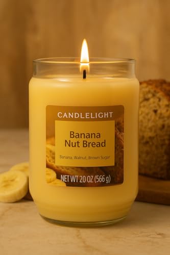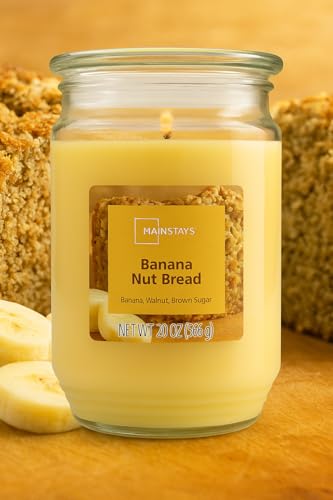 Candle-lite ( Mainstays ) - شمعة كانواتي معطرة في برطمان زجاجي سعة 591 مل، برائحة خبز الجوز بالموز، تدوم حتى 120 ساعة من الاحتراق، بفتيل واحد