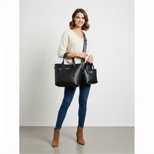 KANAZ - شنط يد أنيقة من الجلد الصناعي للنساء، طقم مكون من شنطة كبيرة وشنطة صغيرة مع حزام مزدوج بتصميم ماندو من كاناز F3748