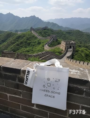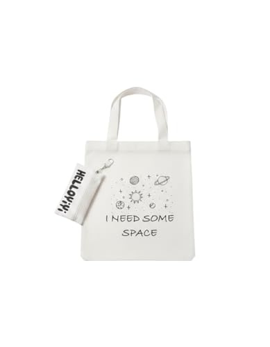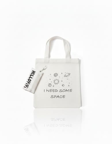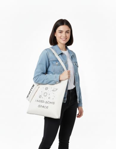 KANAZ - شنطة كتف كبيرة توت للنساء بتصميم مطبوع «Hello Space» - شنطة يد عصرية كاجوال، شنطة حمل يومية خفيفة الوزن للعمل والتسوق والسفر F3775 من كاناز