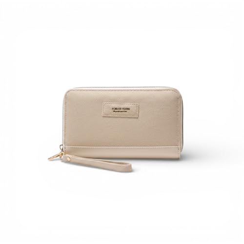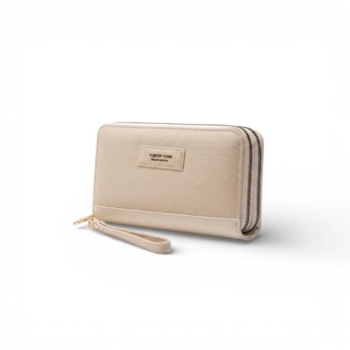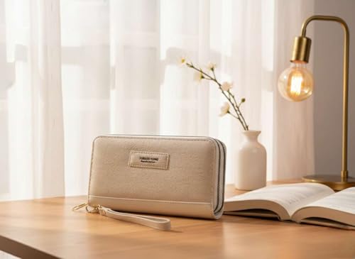 KANAZ - محفظة نسائية طويلة بسحاب بنمط كتاب مع حزام معصم من كاناز - محفظة كلاتش انيقة ذات سعة كبيرة للبطاقات والنقود والجوال، A0201 بوندا بوك (اوف وايت)