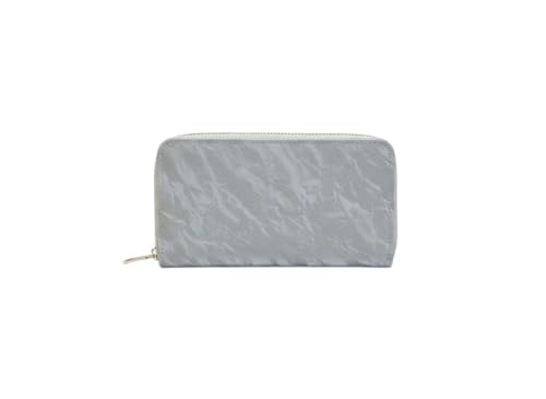 KANAZ - محفظة طويلة بسحاب دائري للنساء من كاناز - حقيبة يد اكورديون نايلون مجعدة خفيفة الوزن مع قطع معدنية ذهبية اللون، منظم بطاقات متعدد وتصميم آمن للسفر، BKL8 (رمادي)