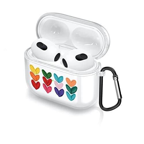 KANGHAR - حافظة حماية شفافة لسماعات إيربودز 3 (2021) - جراب حماية من البولي يوريثين المقاوم للحرارة الناعم المرئي بإضاءة ليد أمامية من (KANGHAR)، تصميم شفاف قابل للحمل مزوّد بسلسلة مفاتيح، إكسسوار أنيق لـ