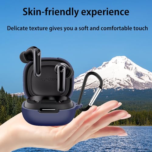 KANOYO - جراب حماية من السيليكون متوافق مع انكر ساوند كور P40i، جراب حماية لكامل الهيكل يدعم الشحن اللاسلكي ومقاوم للصدمات لسماعات انكر ساوند كور P40i مع حلقة تثبيت بلون أزرق من كانويو