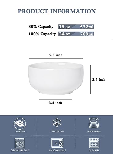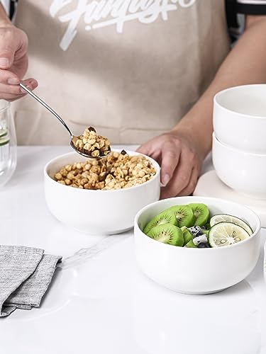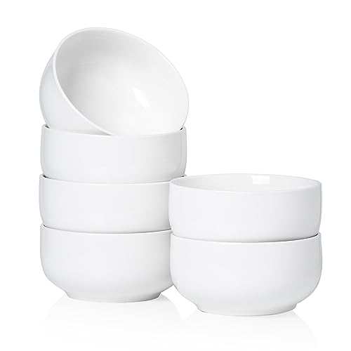 Kanwone - أطباق عميقة بورسلين للحبوب 14 سم من كانوون بولة بسعة 710 مل للمطبخ بيضاء والحساء والشوفان والأرز والسلطة والحلوى والفواكه آمنة للاستخدام في الميكروويف وغسالة الأطباق 6 قطع