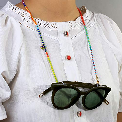 KANYEE - حبل حامل للنظارة الطبية والشمسية بخطافات من خرز مطاطي وسلسلة عملية، حبل حمل واقي الوجه والنظارة الطبية يثبت حول العنق من كانييه, 15I, Medium