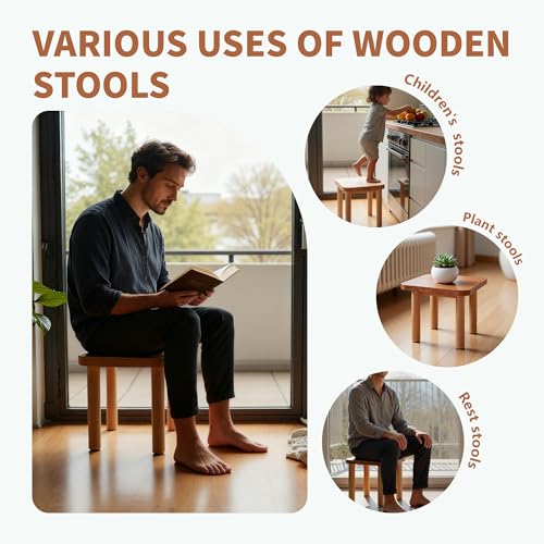 KAOTGOT - مقعد خشبي صغير للاطفال من كاوتجوت، كرسي خشبي غير قابل للانزلاق للبالغين لغرفة النوم والحمام