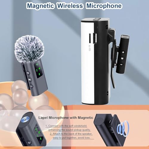 - 【ميكروفون لافالير لاسلكي مغناطيسي】يتم إقران مكبر الصوت الصغير الخاص بنا مع ميكروفون لاسلكي بطية السترة. يزن هذا الميكروفون الشخصي 11 غرام/0.39 اونصة فقط، مما يجعله سهل التثبيت على طوق أو ربطة عنق أو محمول باليد. بفضل تصميمه المغناطيسي، يسهل مطابقة الزجاج الأمامي مع الميكروفون، مما يعزز جودة الالتقاط. كما يمكن توصيله بالجزء الخلفي من مكبر الصوت بواسطة المغناطيس، مما يقلل من خطر الضياع.