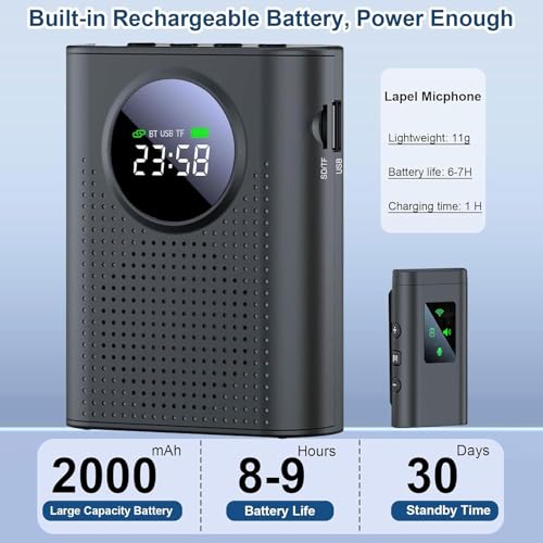- 【عمر بطارية طويل】ميكروفون مكبر الصوت مدمج ببطارية قابلة لإعادة الشحن 2000 ميلي امبير في الساعة يمكن أن تحصل على ما يصل إلى 7-9 ساعات من وقت العمل بمجرد الشحن الكامل. يتم شحن الميكروفون ومكبر الصوت المحمول بسرعة خلال 1-2 ساعة، مع كابل الشحن من النوع سي المرفق. (*يرجى شحن مضخم الميكروفون في كل مرة قبل الاستخدام، والتأكد من أن طاقة البطارية توفر وقت العمل بالكامل. ربما شاشة مستوى البطارية ليست دقيقة بما فيه الكفاية.)