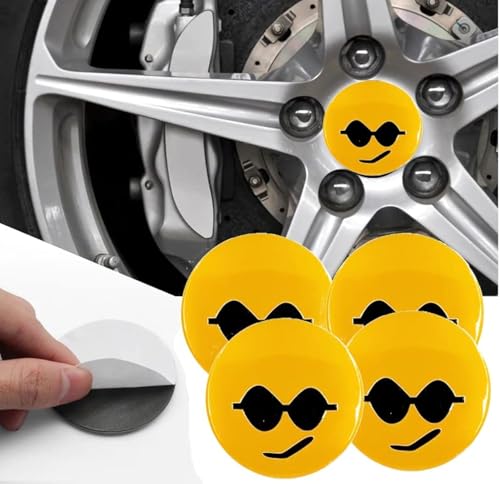 Generic - ملصق غطاء محور اطارات السيارة ثلاثى الابعاد ملصق طبة جنط سيارة متوافق مع جميع انواع السيارات -اشكال سمايل كود 5588 - عدد 4 قطع - من كابر تريد