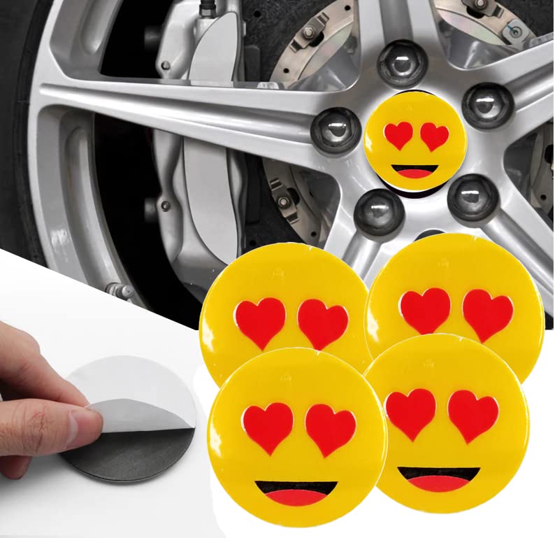 Generic - ملصق غطاء محور اطارات السيارة ثلاثى الابعاد ملصق طبة جنط سيارة متوافق مع جميع انواع السيارات -اشكال سمايل كود 5587 - عدد 4 قطع - من كابر تريد