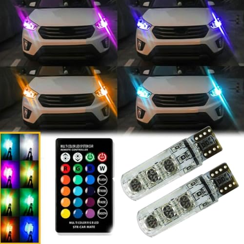 - لمبة ليد T10 مع ريموت كنترول ، مصباح قراءة بأضواء ب16 لون، بديلة لإضاءة السيارة الداخلية/الخريطة/إضاءة السقف/الباب/لوحة الترخيص تيار 12 فولت من قطعتين