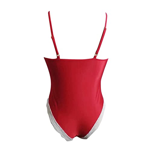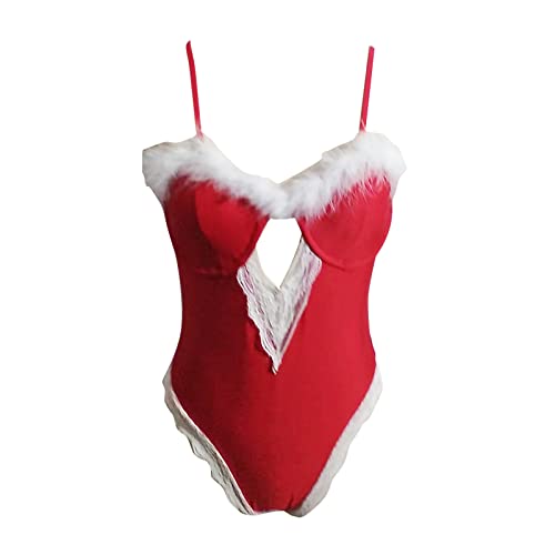 KAQQ - طقم لانجيري مفتوح للكريسماس للنساء مع توب كات سانتا من الدانتيل الاحمر من كيه ايه كيو كيو