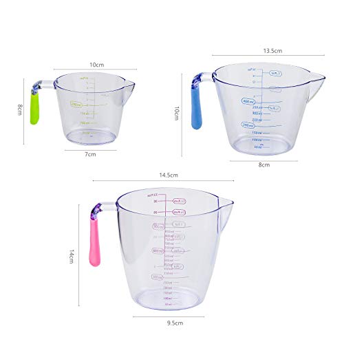 KARAA - طقم شفاشق معيار بلاستيكية شفافة مكون من 3 قطع بسعة 200 و400 و900 مل، ياتي مع مقبض ويستخدم للطبخ والخبز