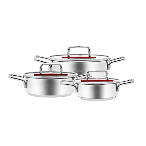 KARACA - طقم كسرولة اريا، أواني طهي من الفولاذ من كاراجا، بلون أحمر، 6 قطع
