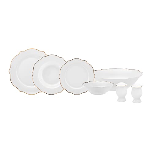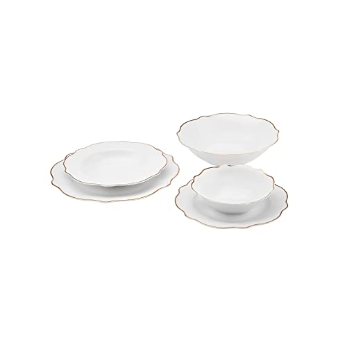 KARACA - طقم عشاء بورسلين على شكل زهرة بتصميم مموج من كراكا، مكون من 27 قطعة لـ 6 أشخاص مع أكباق عميقة كبيرة بلون ذهبي