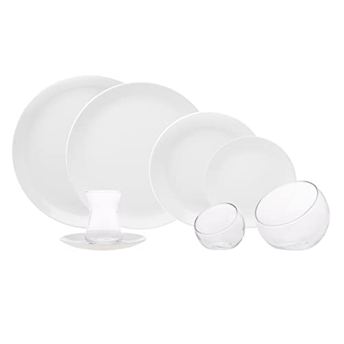KARACA - كاراچا |طقم أواني فخارية 26 قطعة من دارسي لون أبيض، طقم أواني تقديم الطعام دائرية بتصميم فريد من نوعه من الزجاج من
