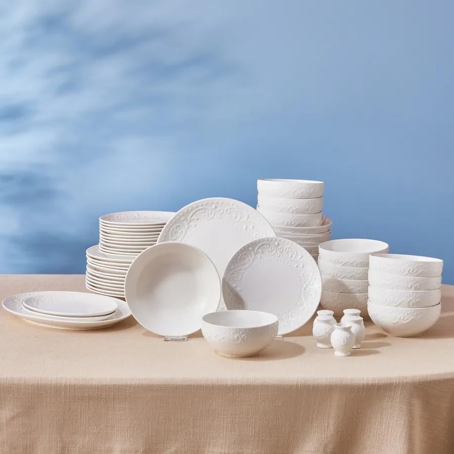 KARACA - طقم عشاء فوريفر بون بتصميم سادة مكون من 56 قطعة تكفي لخدمة 12 أشخاص من كاراجا