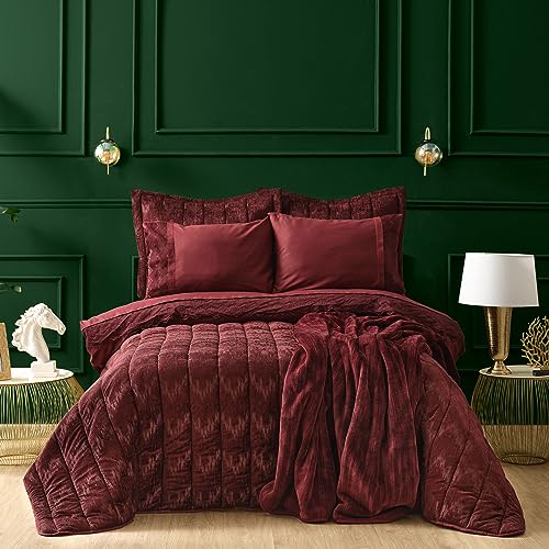 - طقم كوفرتة بوهو بلون أحمر (كلاريت ريد) من تشكلية المهر، 8 قطع من كاراكا.