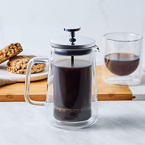 KARACA - كاراچا |ماكينة تحضير القهوة الفرنسية المخروطية المعدنية من كاراكا بيا، 350 ملليلتر، الزجاج البورسليكات