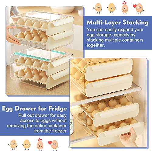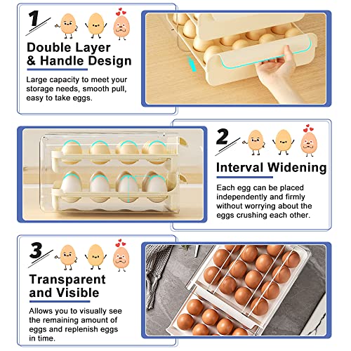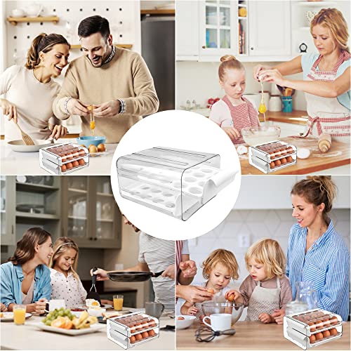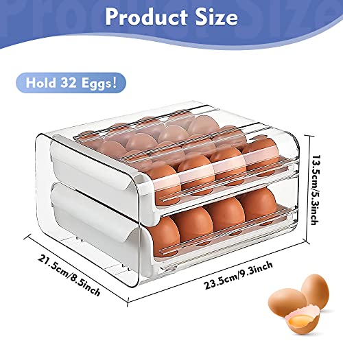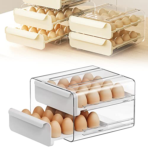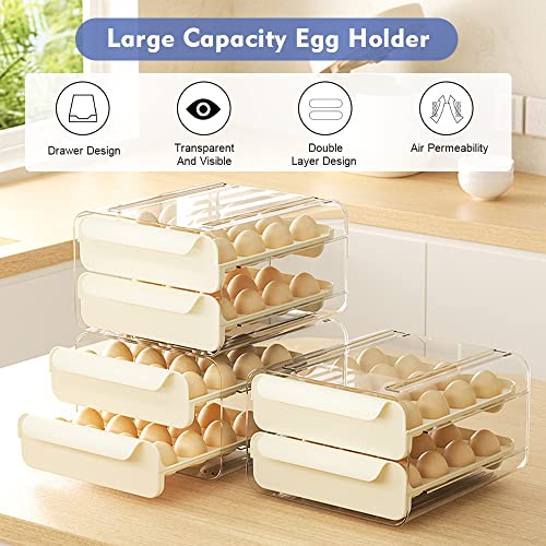 KARBAG - حاوية تخزين بيض من كارباج لثلاجة المطبخ مزدوجة الطبقات يمكنها 32 بيضة قابلة للتكديس البلاستيك الشفاف مع مقابض تحافظ على البيض طازجًا