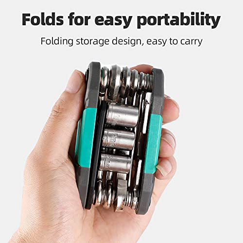 - مجموعة أدوات متعددة 16 في 1 للدراجة: مفتاح الين 1/2/3/4/5/6 ملم، مفتاح بيبه 8/9/10/ملم، مفك عادة، مفك صليبة، قضيب تمديد الأكمام، مفتاح ربط، مفتاح عدة شوكة 8/10/15 ملم.