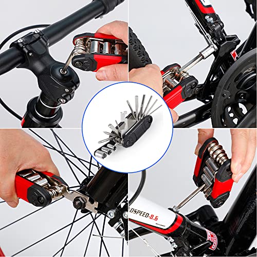 Kardne - أدوات إصلاح الدراجة متعددة الاستخدامات 16 في 1 من كاردني، مجموعة إصلاح الدراجة، أكسسوارات إصلاح الدراجة الجبلية، محمولة وعملية، مثالية للاستخدام في الهواء الطلق والرياضة والتخييم والسفر (أسود)