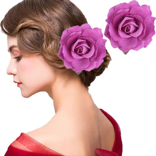 Kareeran - مشبك شعر صناعي بتصميم وردة بلون أحمر للبنات ووصيفات العروس، لون وردي - أرجواني فاتح