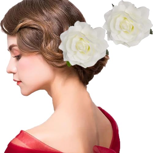 Kareeran - مشبك شعر على شكل وردة صناعية، دبوس شعر على شكل زهرة لحفلات الزفاف والشاطئ وعيد الحب وعيد الأم