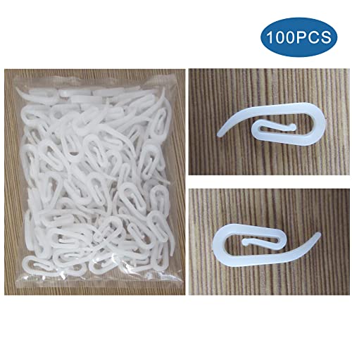 KARELLS - خطافات ستائر على شكل حرف G مقواة من البلاستيك لستارة الباب والشباك والدش من 100 قطعة لون ابيض
