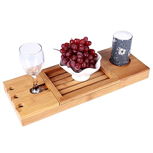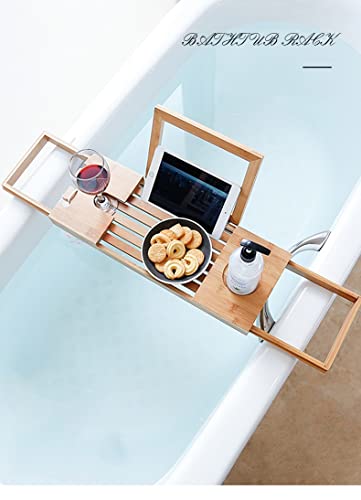 KARFRI - صينية حوض الاستحمام قابلة للتمديد، رف حامل تابلت وكتب للحمام وحوض الاستحمام، ملحقات الحمام والاستحمام