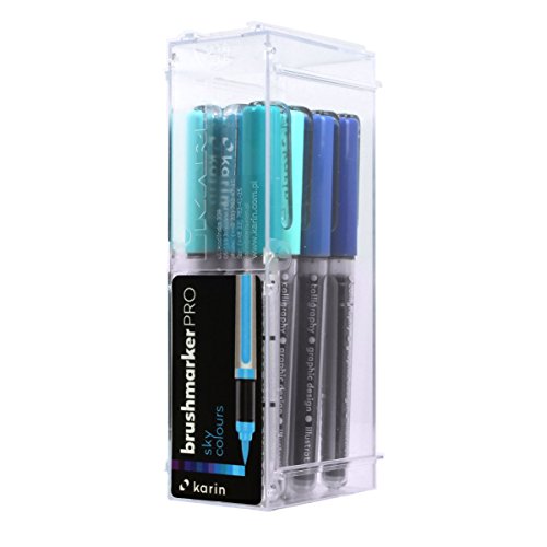 Karin - مجموعة أقلام ماركر براش برو مكونة من 12 قلم بلون سماوي بألوان مائية شفافة كارين أزرق متوسط