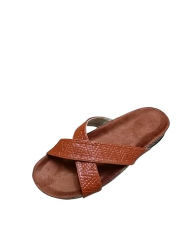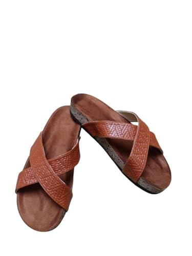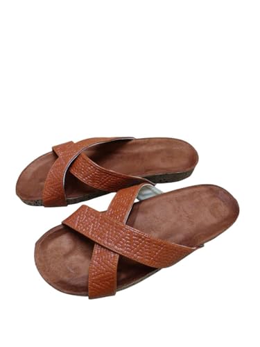 Karisma - شبشب شمواه من الفلين واللاتكس، شبشب بنعل داخلي مبطن، صندل منزلق بطبعة قش متقاطع من البولي يوريثان