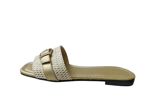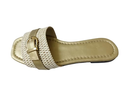 Karisma - شبشب مسطح مريح بحزام بسيط من القماش الصناعي مع إبزيم وسيور رفيعة للنساء من كاريزما
