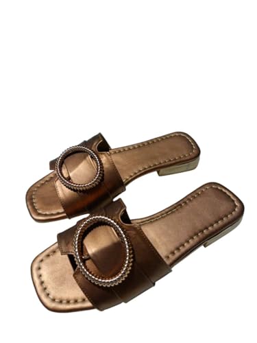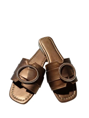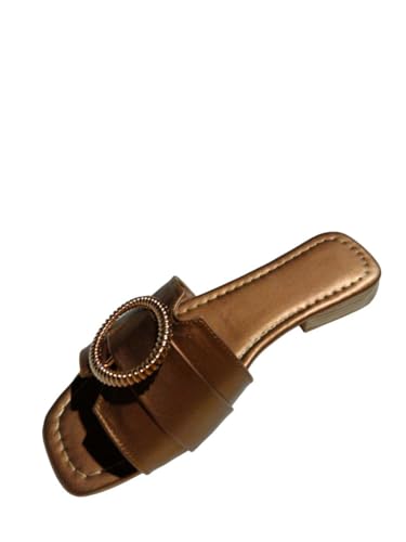 Karisma - صندل مسطح من الجلد بمقدمة مربعة وحزام بسيط مع ملحق بتصميم بيضاوي للنساء من كاريسما