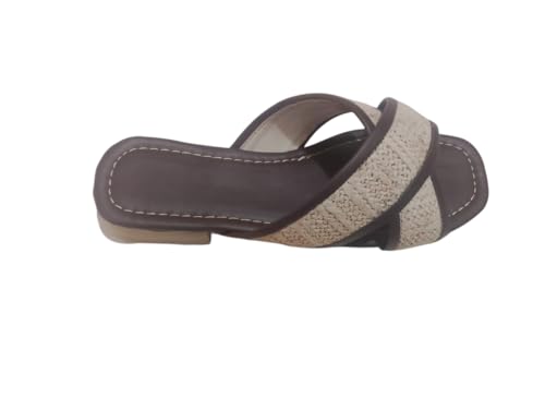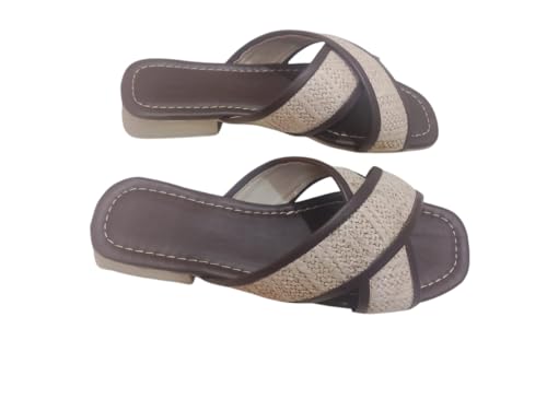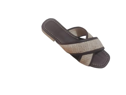 Karisma - Karisma Womens Slide Sandal Canvas Flat Sqaured Toe, Simple Criss Cross Straps With Thin Lining Strips