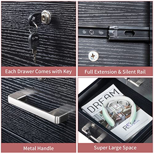 Karl home - خزانة ملفات خشبية – 3 أدراج عمودية مع 3 أقفال، حامل طابعة وخزانة تخزين متنقلة، درج تخزين للملفات للاستخدام المنزلي والمكتبي من كارل هوم، لون أسود، مقاس (40 × 40 × 66.3 سم)