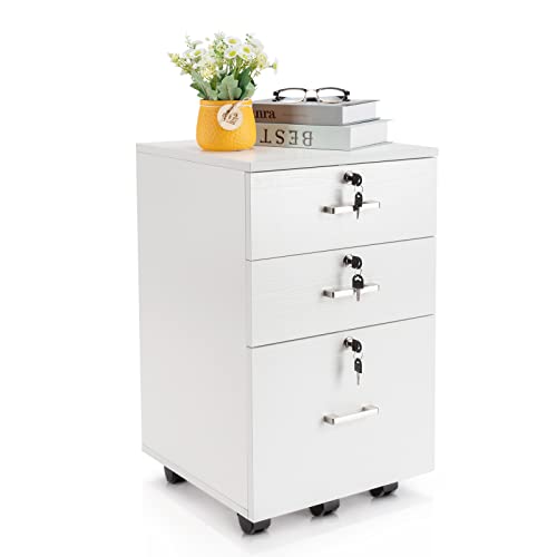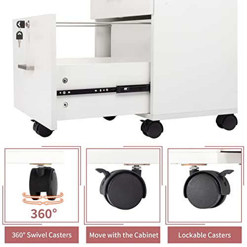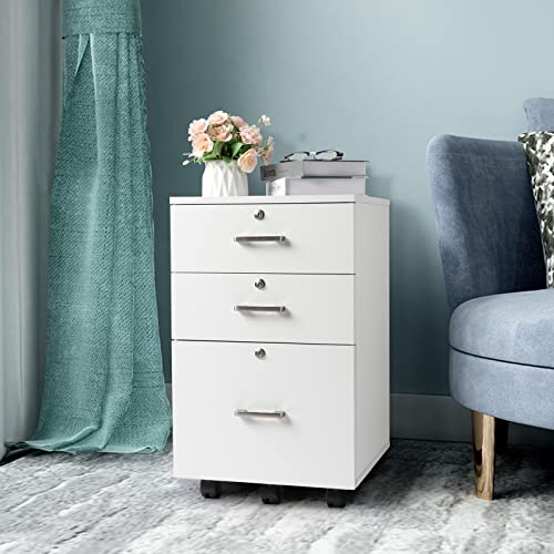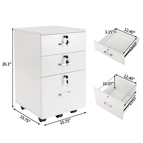 Karl home - دولاب ملفات خشب عمودي بعدد 3 أدراج و3 أقفال، دولاب تخزين متنقل وحامل طابعة، درج تخزين الملفات للمنزل والمكتب من كارل هوم، لون أبيض، مقاس 40 سم طول × 40 سم عرض × 66 سم ارتفاع