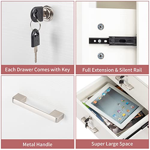 - 【درج مزود بقفل】كل درج مزود بقفل مستقل لحفظ ملفاتك بأمان وسرية. كل قفل مزود بمفتاحين في حالة الطوارئ. المقابض المعدن عالية الجودة تعزّز راحتك عند الاستخدام.
