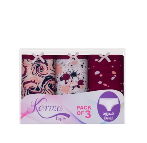 Karma - طقم بانتيهات بانتي مرتفع الخصر من القطن للنساء 3 قطع - مقاس M متعدد الالوان 95% قطن و5% ايلاستين