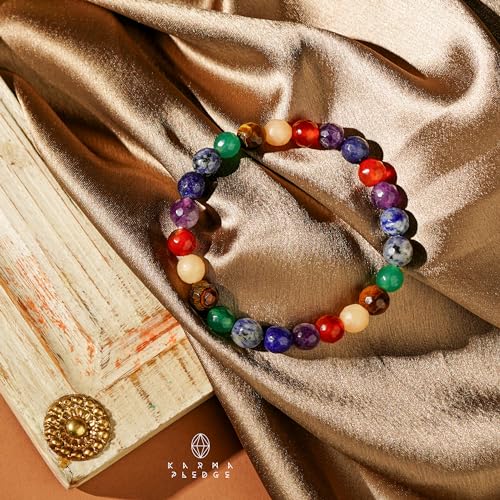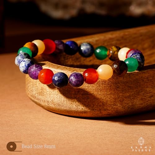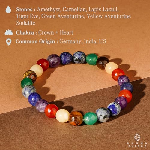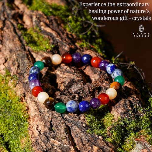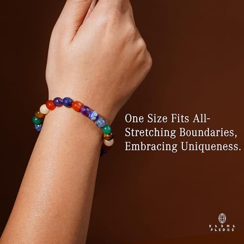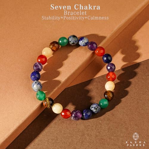 KARMAPLEDGE - سوار كريستال علاجي بالشاكرات السبع للنساء والرجال من كارمابليدج، سوار مرن قابل للتمدد مع كريستالات خرزية مصنوعة يدويًا للتأمل والطاقة الإيجابية والتوازن