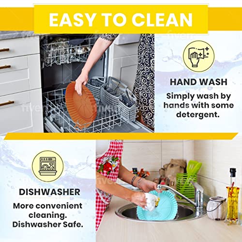- 2. سهلة التنظيف: مصنوعة من السيليكون الآمن غذائيًا، هذه البطانات هي بديل لورق الزبدة القابل للاشتعال وبطانات القلاية الهوائية التي تستخدم لمرة واحدة.