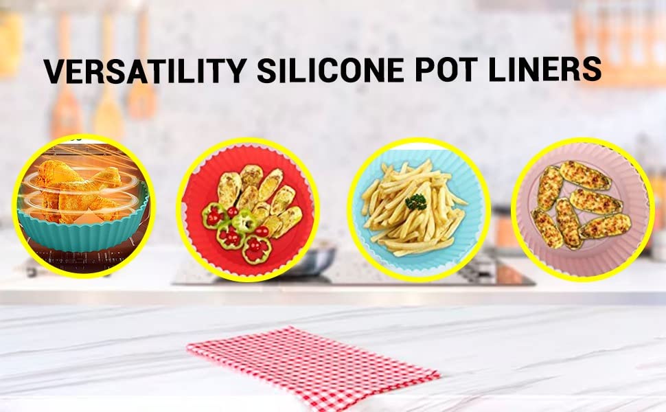 - 5. ملاءمة شاملة: استخدم بطانات السيليكون هذه كمنظم للطعام في سلة القلاية الهوائية لسهولة تخطيط الوجبات وإعدادها.