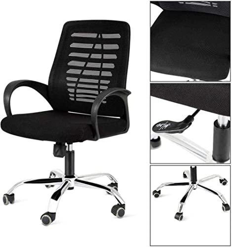 karnak - كرسي مكتب منزلي مريح ودوران 360° بظهر شبكي ومسند ذراع وقاعدة من الفولاذ المقاوم للصدأ وارتفاع قابل للتعديل بدعم للظهر من كرنك، لون أسود