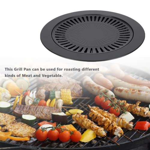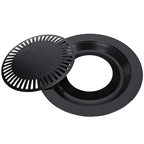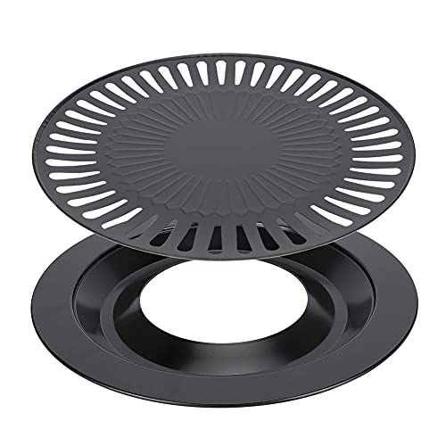 Karohat - شواية دائرية من الفولاذ المقاوم للصدأ من كاروهات، 32 سم، صينية شواء داخلية بدون دخان، سطح غير لاصق، حلقة خارجية مملوءة بالماء للعصائر، متوافقة مع مواقد الكهرباء والغاز والبروبان - أسود
