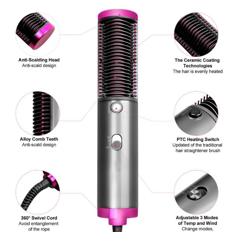 - تصميم فرشاة وأداة فرد 2 في 1: تجمع بين مكواة فرد الشعر وفرشاة فك تشابك الشعر في أداة واحدة سهلة الاستخدام، مثالية للتصفيف السريع والتحكم في الشعر المجعد وتنعيم الخصلات أثناء تمشيط شعرك دون عناء.