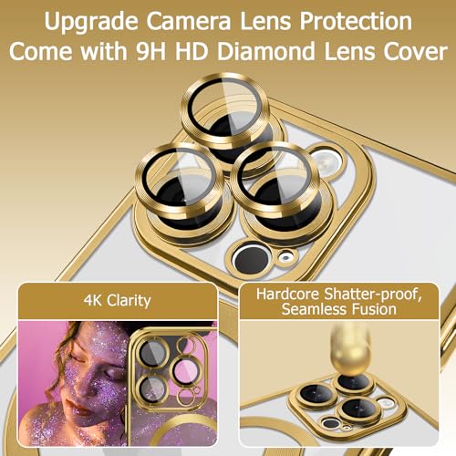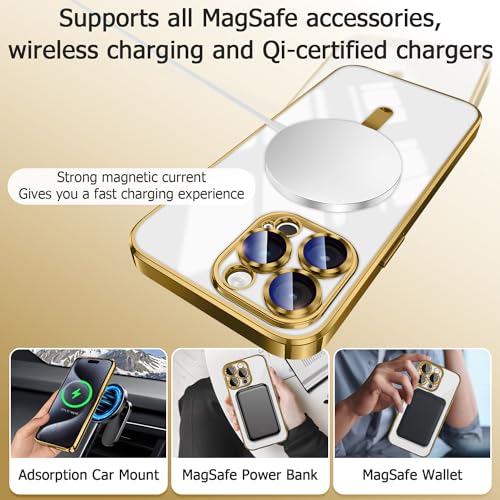 Karrint - جراب مغناطيسي مع ماج سيف يدعم الشحن اللاسلكي من البولي يوريثين المقاوم للحرارة مضاد للصدمات غطاء كاميرا مدمج واقي متوافق ايفون 15 برو كارينت ذهبي