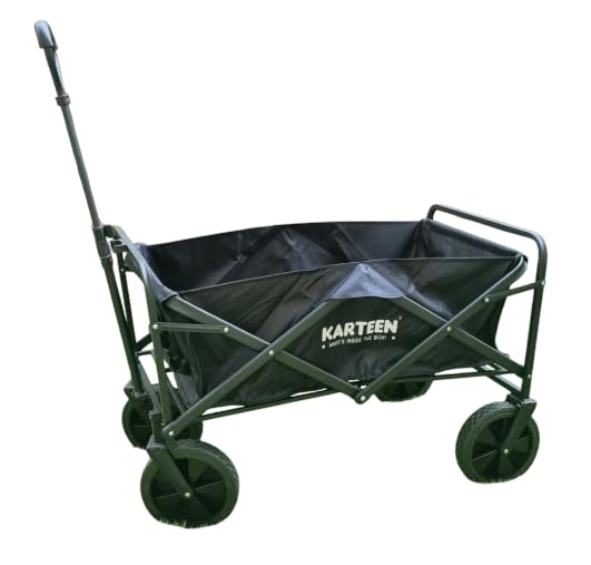 Karteen - عربة شاطئ ماكسي باجي من كارتين، عربة تسوق بسعة كبيرة، عربة محمولة قابلة للطي للخدمة الشاقة والرياضة والتسوق والتخييم (أسود)