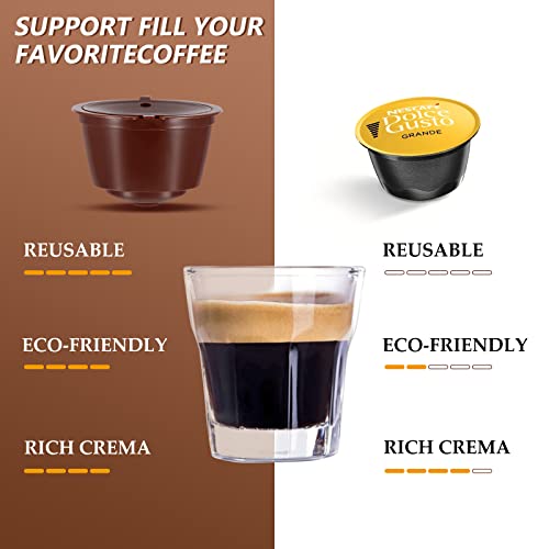 Kasachoy - كبسولات قهوة قابلة لإعادة الاستخدام لماكينة دولتشي جوستو عبوة من 4 كبسولة فلتر الملء مع ملعقة وفرشاة تنظيف لمحبي القهوة بلاستيك كاساتشوي
