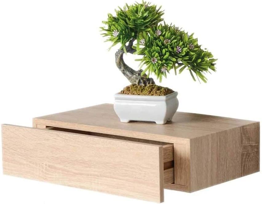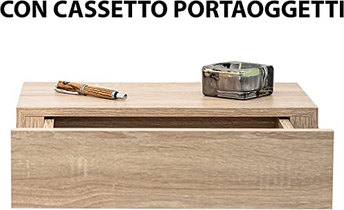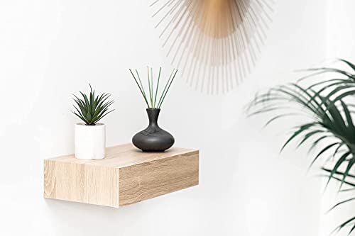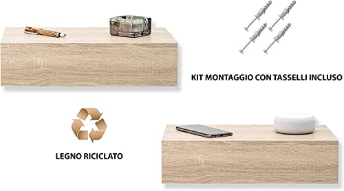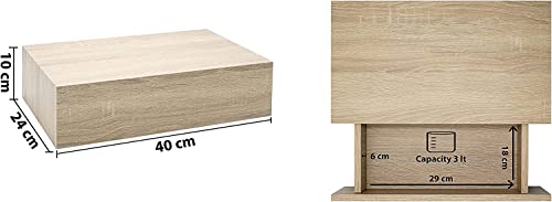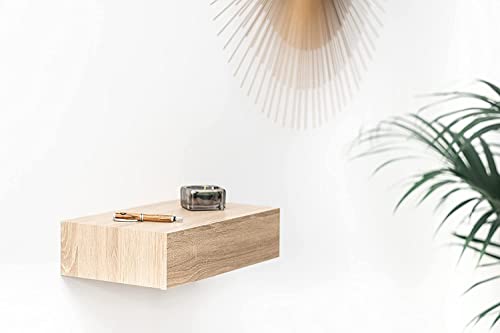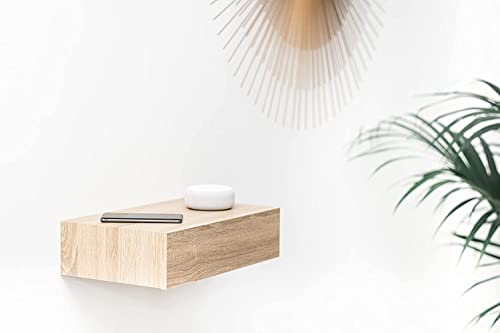Kasahome - رف حائط مع درج من كاساهوم، رف حائط خشبي ابيض وبلون البلوط 40 × 24 × 10 سم (بلوط)